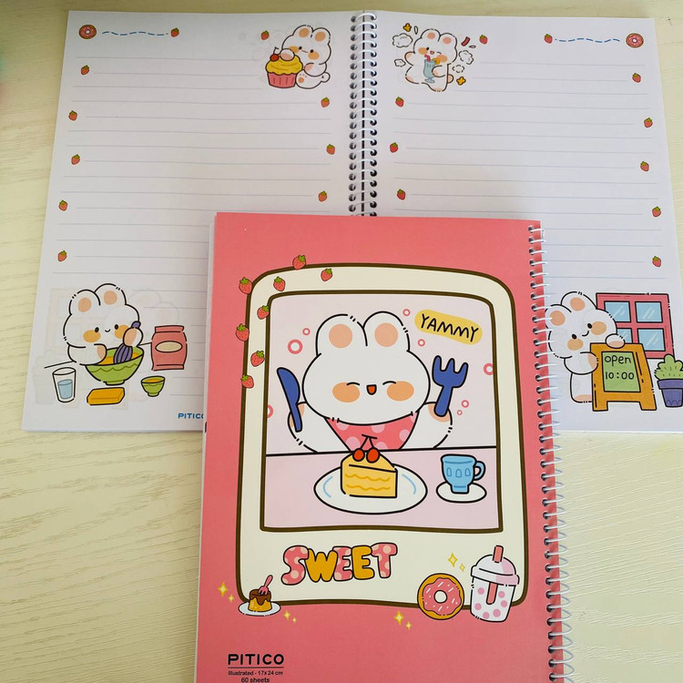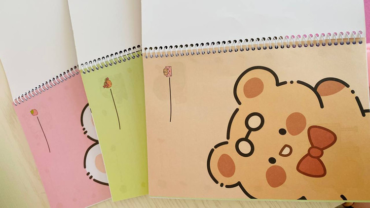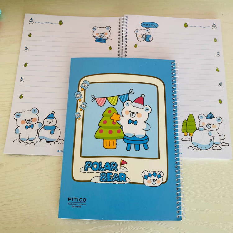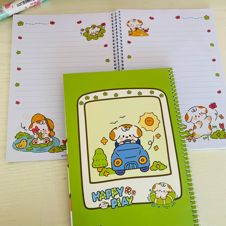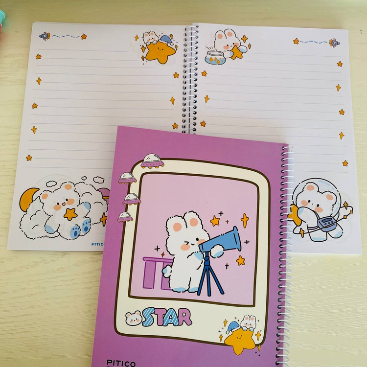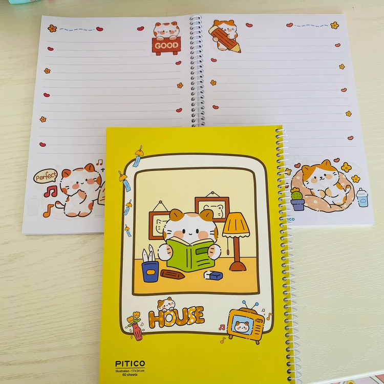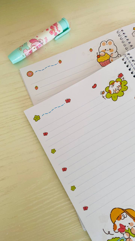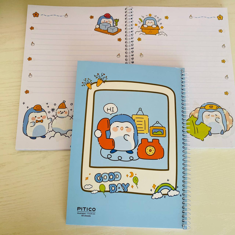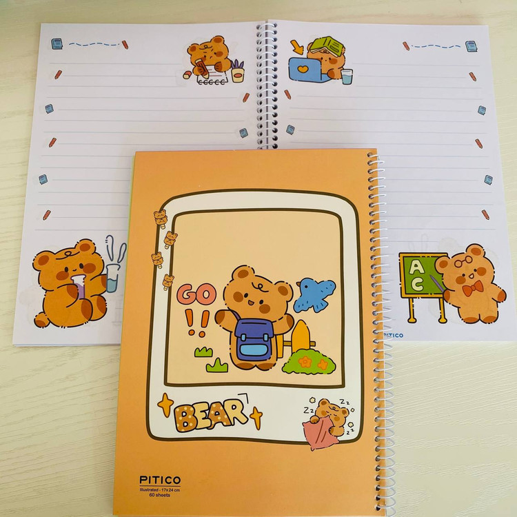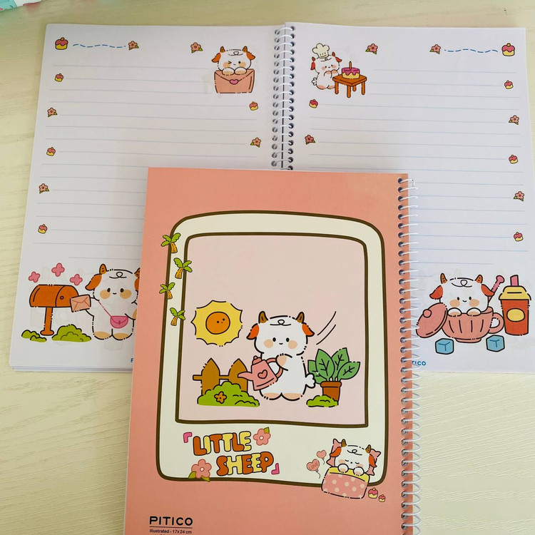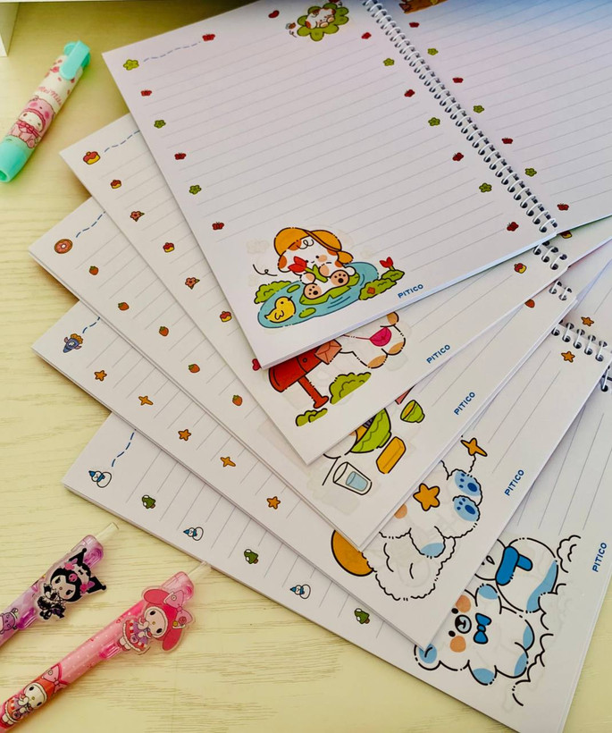 هر دفتر شصت برگ هستن و تمام صفحات (۱۲۰ ص) حاشیه دار عروسکی داره