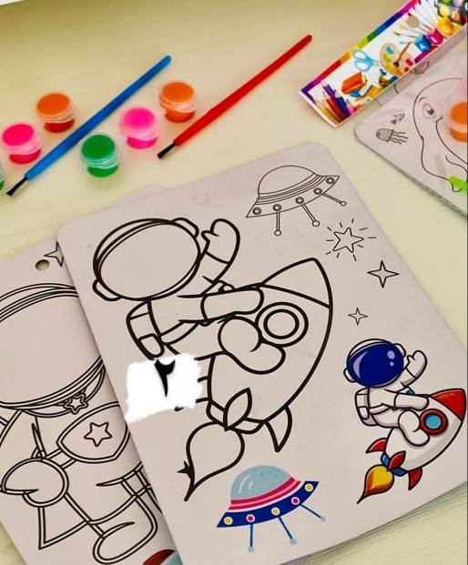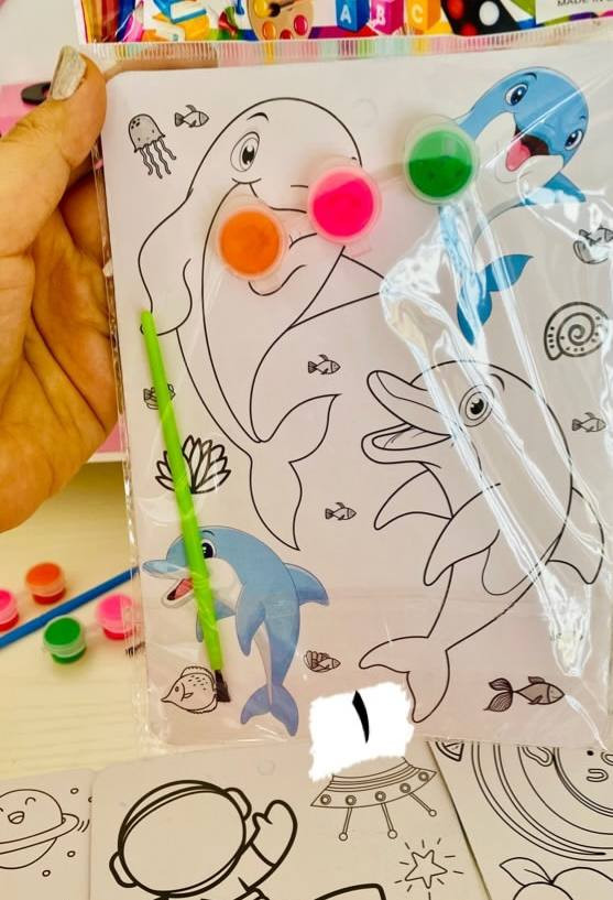 هر پک شامل دو طرح مقوایی پشت و رو برای رنگ آمیزی دارد / سه رنگ گواش /و یک قلم مو