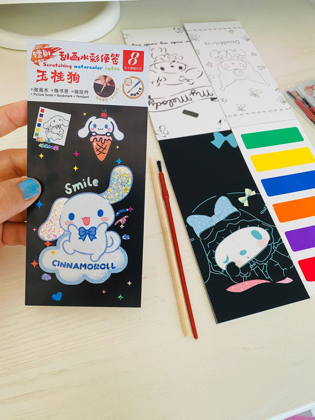 هر دفتر شامل بک قلم چوبی و یک قلمو