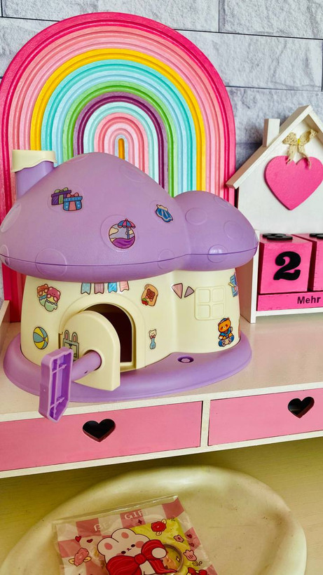 قلک فانتزی طرح sweet house در دو رنگ صورتی و بنفش موجوده /جای سکه و تراول داره /همچنین کلید برای باز کردن در ان / توجه شود بدون استیکر است و به سلیقه خودتون میتونید برچسب بزنید