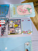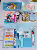 آیتم های پک:: جامدادی شفاف+دفترچه توددولیست+نقاشی الماسی+دفترچه قلبی+ست مهر غلتکی به همراه استامپ+نوت پد+چسب زخم فانتزی+خودکار شش رنگ و مهر حاشیه زن+اتودخرگوش+خودکار نامرئی+هایلایتر+اتود مینی+دفترچه+استیک نوت شفاف+خط کش+پوشه