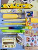 آیتم های پک:پوشه+خط کش+صابون فانتزی+هایلایتر+مدادبینهایت+اتود+خودمار نامرئی+پاکن شعبده بازی+واشی نواری یک+برچسب ضدآب خطکش