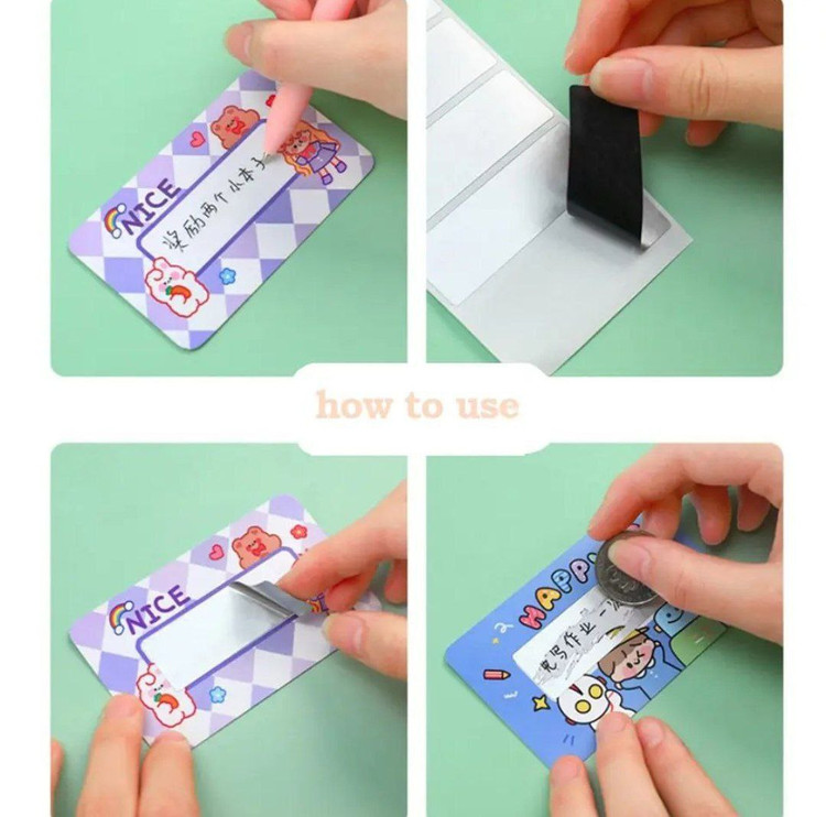 هر کارت پستال یک عدد چسب دارد که بعد نوشتن متن چسب روی ان قرار میدهید و بعد از هدیه دادن با خراشیدن متن نمایان میشود