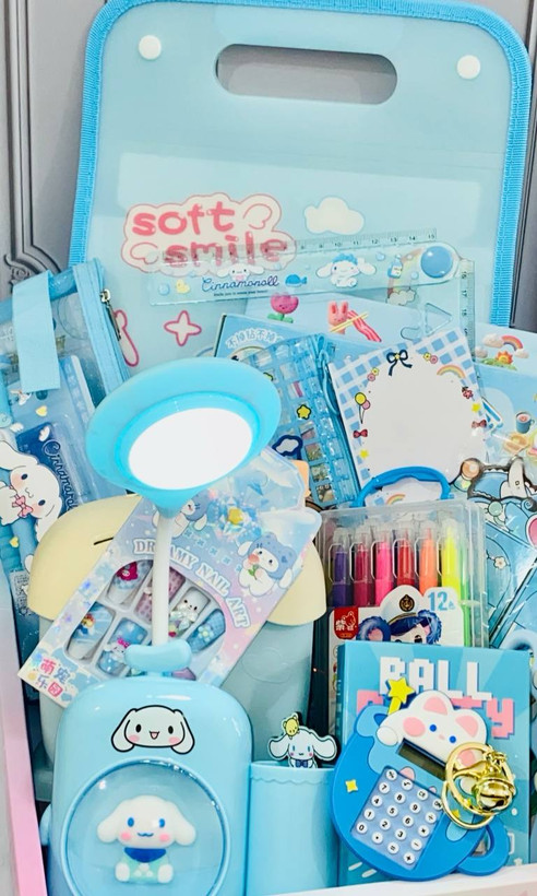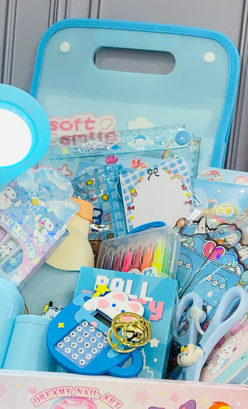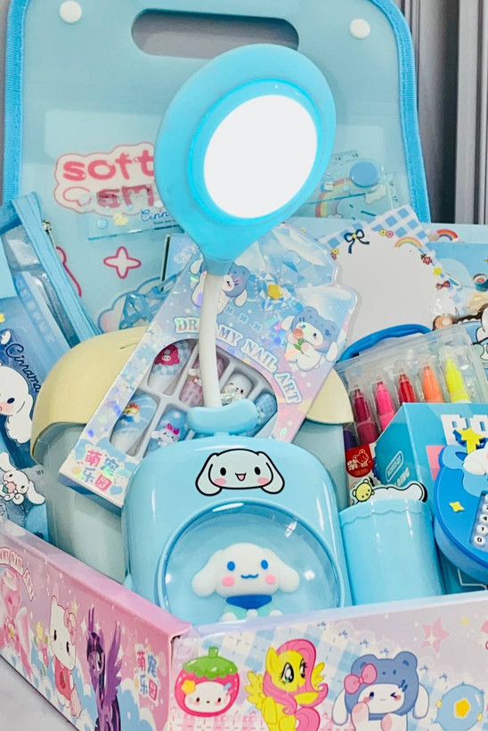 آیتم های پک:چراغ مطالعه چهار کاره+قلک کلبه+اسپندینگ فایل(کیف دستی)+ناخن مصنوعی طرح برجسته+نقاشی الماسی قاب چوبی+ماشین حساب +لگو فیگور+ماژیک دو سر +جامدادی شفاف+چسب دو طرفه+غلطگیر+اتود+رواننویس+کاتر+نوتپد+تودولیست+بوک مارک+بازی استیکری