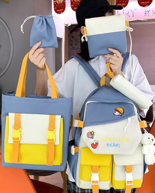 ویژگیشامل یک کوله مدرسه +یک کیف دستی +کیف روزمره +جامدادی+کیف ابزار ریاضی یا تنقلات