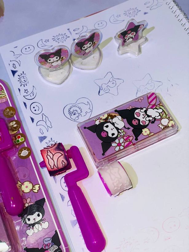 ست ۷ تیکه مهر غلتکی حاشیه ساز کرومی +جوهر یدک