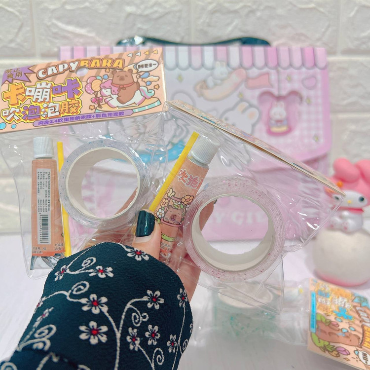 آیتم های پک:هر پک دارای یک رول چسب دوطرفه نانو +پماد چسبناک برای ساخت اسکوییشی و فیجت و دارای نی