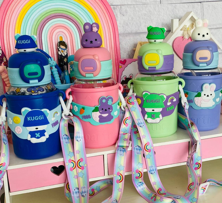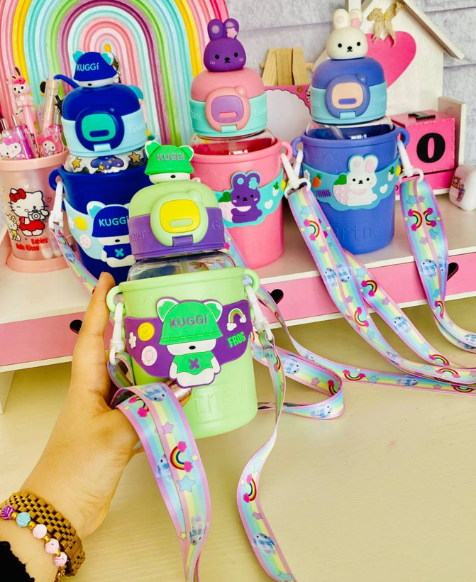 قمقمه کاور دار عروسکی یک بند بلند قابل تنظیم دارد